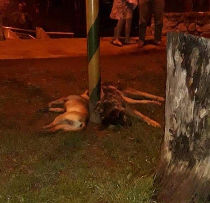 En el día de ayer, vecinos de la zona del Paseo de los Duendes advirtieron una irregularidad en las inmediaciones de calle Mina Pabellón. Dos perros se encontraban muertos en el piso muy cerca de un poste de luz.