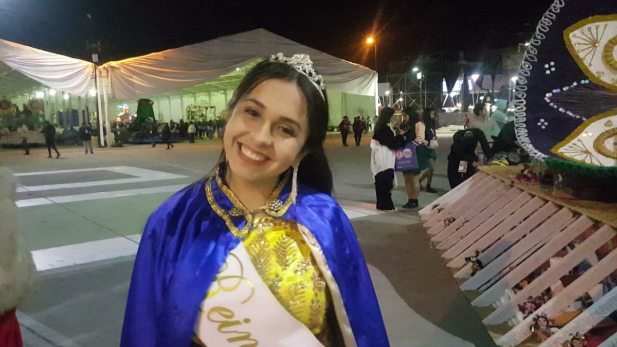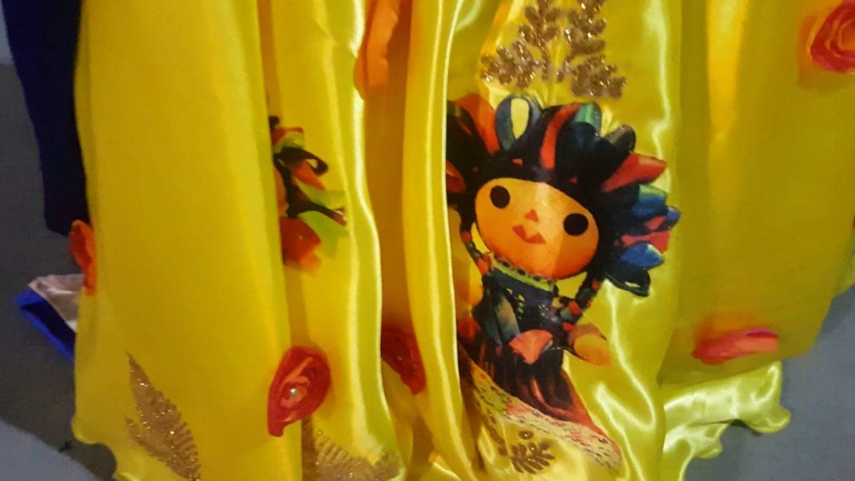 En el Colegio Modelo de Palpalá, su reina Ana Ortiz mostró algo bastante particular y original. Su vestido lleva bordado el diseño de las muñecas que están en el carruaje.