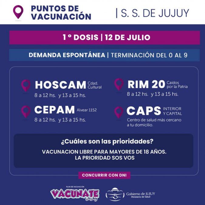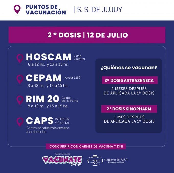- Se habilitó la segunda dosis para quienes recibieron Sinopharm hace un mes y Astrazeneca hace dos meses.