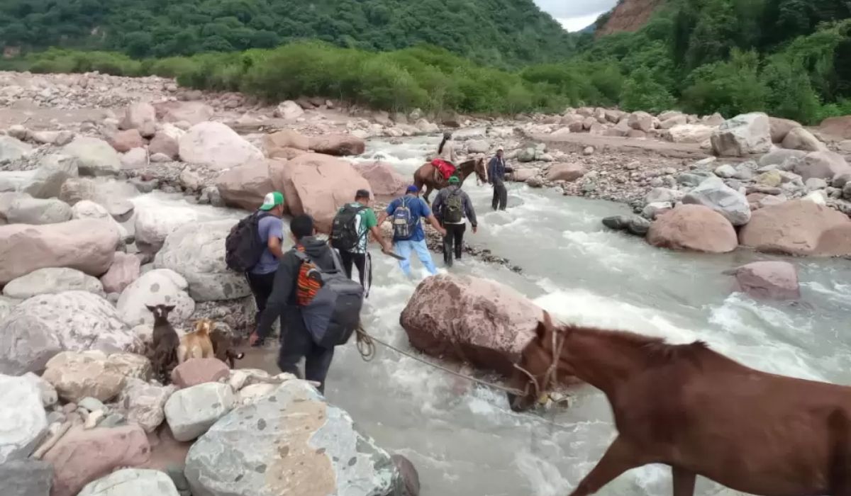 En horas de la tarde, el personal afectado a esta complicada tarea encontró a la mujer en el lugar indicado, quien ya estaba siendo trasladada a lomo de caballo por un ciudadano hacia la localidad de Valle Grande.