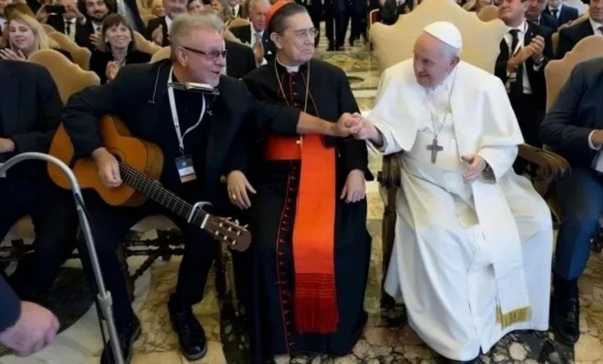 Noche argentina en el Vaticano: León Gieco cantó para el Papa Francisco