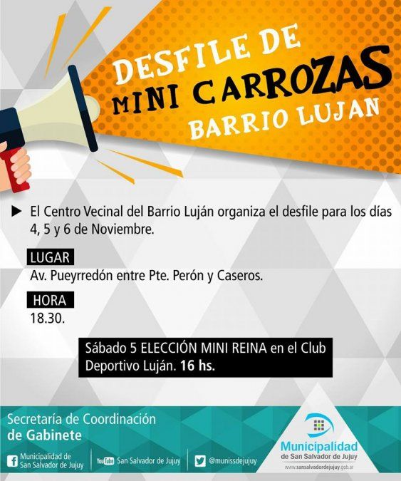 Los días 4, 5 y 6 de Noviembre sobre avenida Pueyrredón entre Caseros y Pte. Perón se realizarán los tradicionales desfiles de Minicarrozas. La actividad es organizada por el centro vecinal de esa barriada y cuenta con el apoyo de la municipalidad local.