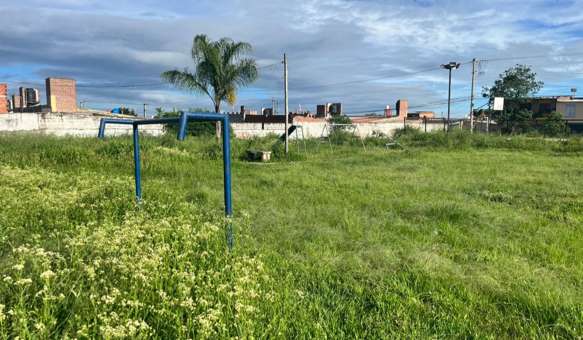 Vecinos denuncian abandono municipal: plazas cubiertas de malezas y sin iluminación