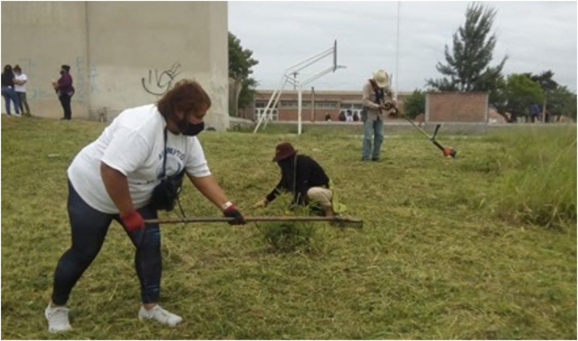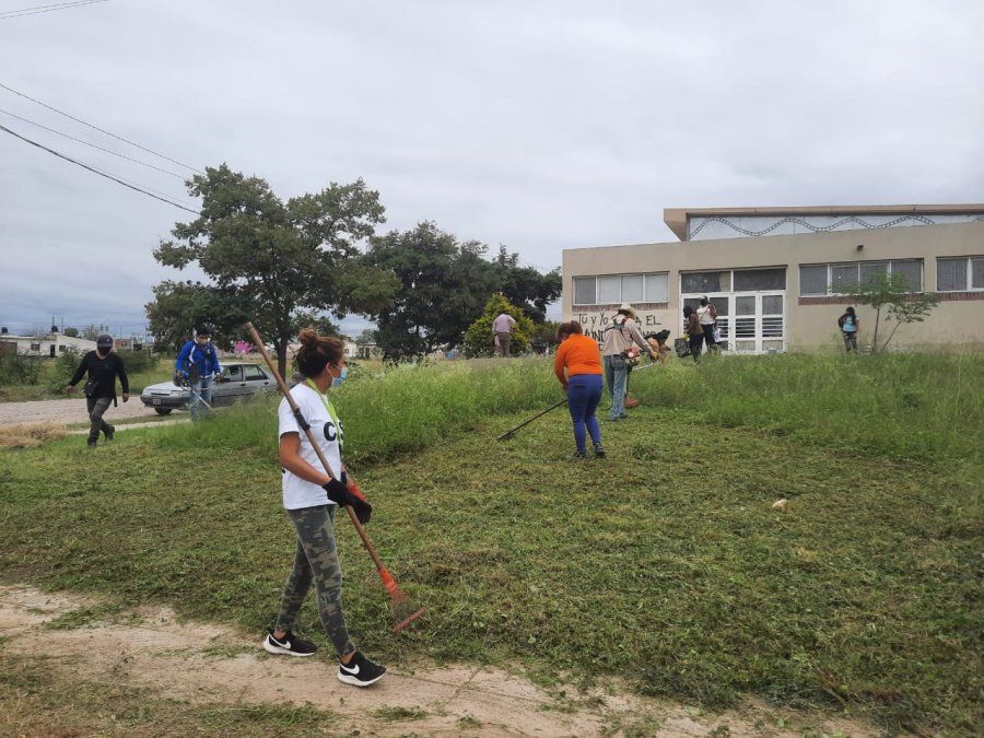 Ahora, se conoció una ardua tarea del Comité de Acción Vecinal quienes también con colaboraciones llegaron a desmalezar la Escuela Provincial de Artes en el barrio San José.