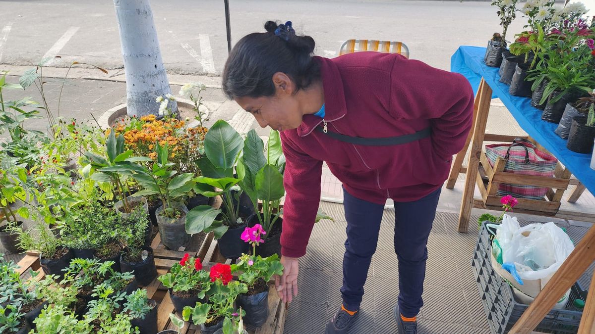 Olga Tolaba es una vecina de El Carmen que vende plantas y flores en la vía pública. Vive con dos hijos, uno de los cuales es discapacitado y cobra una pensión, y asegura que el dinero que gana no le alcanza para comer.