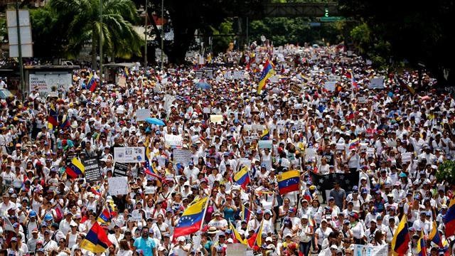 Al grito de "¿Quiénes somos? ¡Venezuela! ¿Qué queremos? ¡Libertad!", miles de mujeres con camisetas blancas iniciaron una nueva marcha hoy hacia el centro de la capital, que se topó nuevamente con un bloqueo de la Guardia Nacional Bolivariana (GNB).