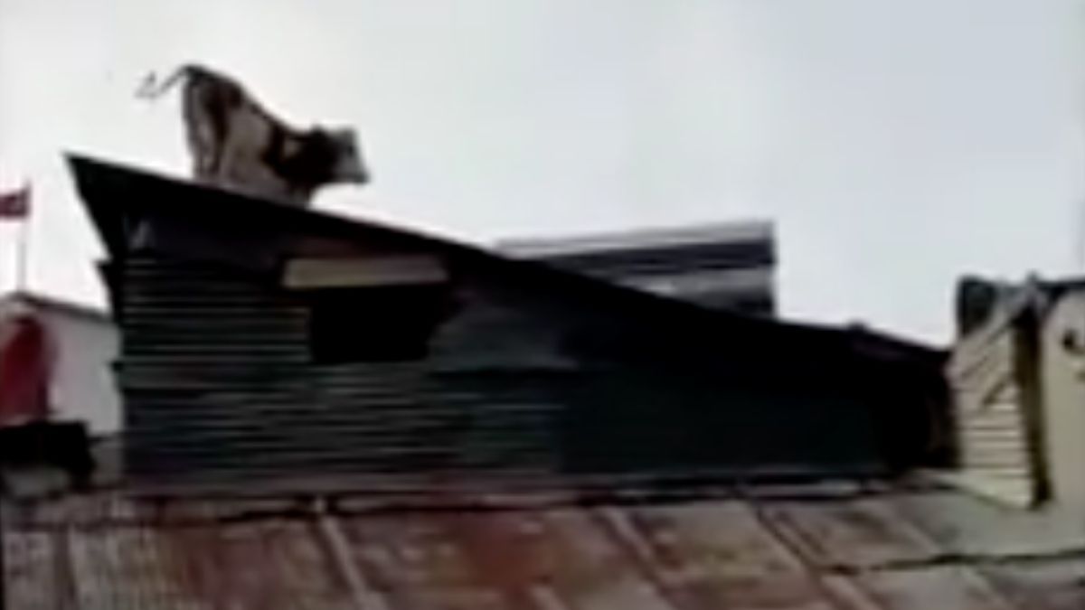 - Este lunes Reuters compartió un video de una vaca caminando sobre los techos. Qué hacía ahí, aún es incierto, pero ha sorprendido en redes sociales.