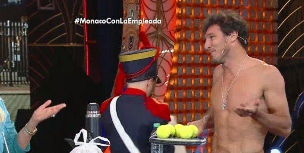 Hubo alusiones a los celos que le podía generar a Pampita, con quien el tenista acaba de blanquear su noviazgo, pero es no impidió el show. Así, Mónaco se acurrucó a la conductora y el cómico y les enseñó a sacar.