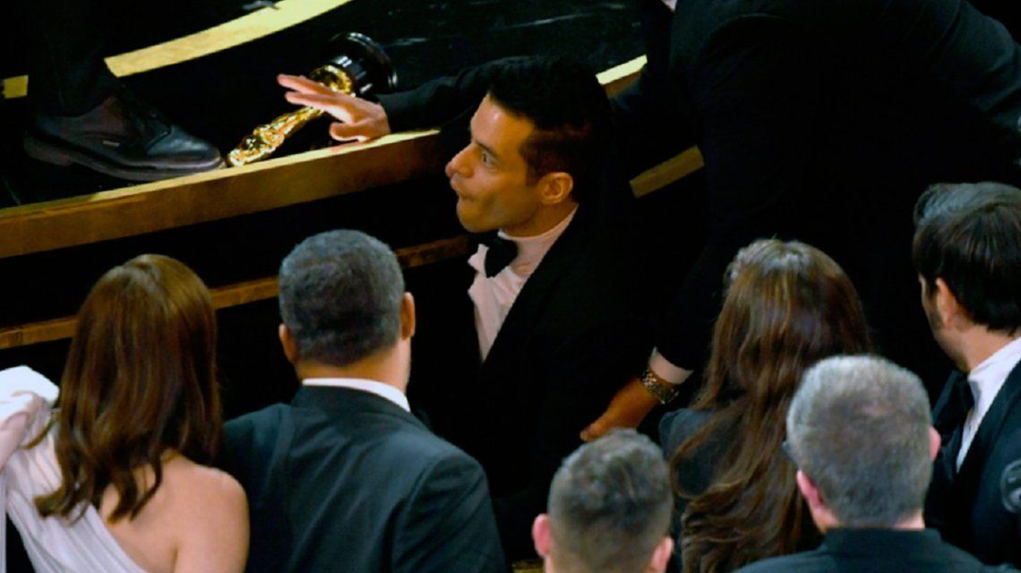 Rami Malek se tropezó en el escenario del Dolby Theatre luego de aceptar el premio a Mejor actor durante la ceremonia de los Oscar 2019.