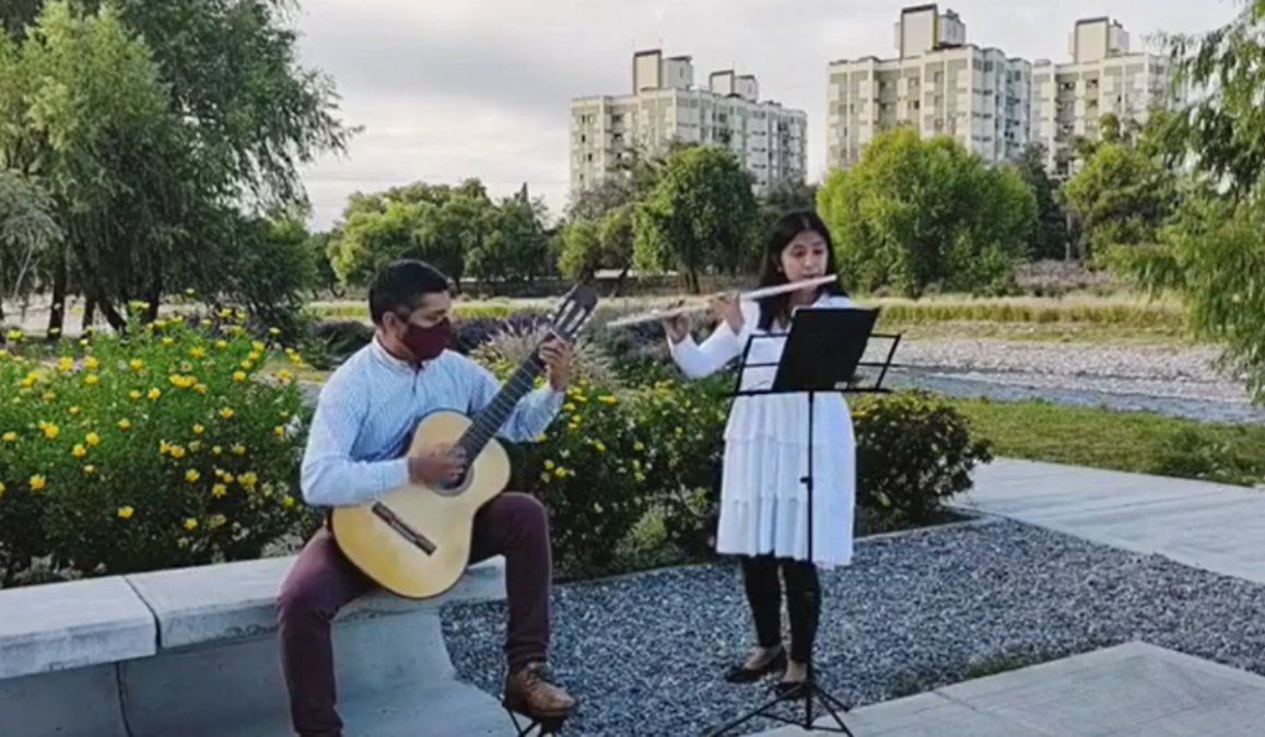 Ana Sivila y Pablo Medrano, músicos y docentes, quisieron conmemorar el 428° aniversario de nuestra Tacita de Plata con la interpretación de la zamba "Entre dos ríos".