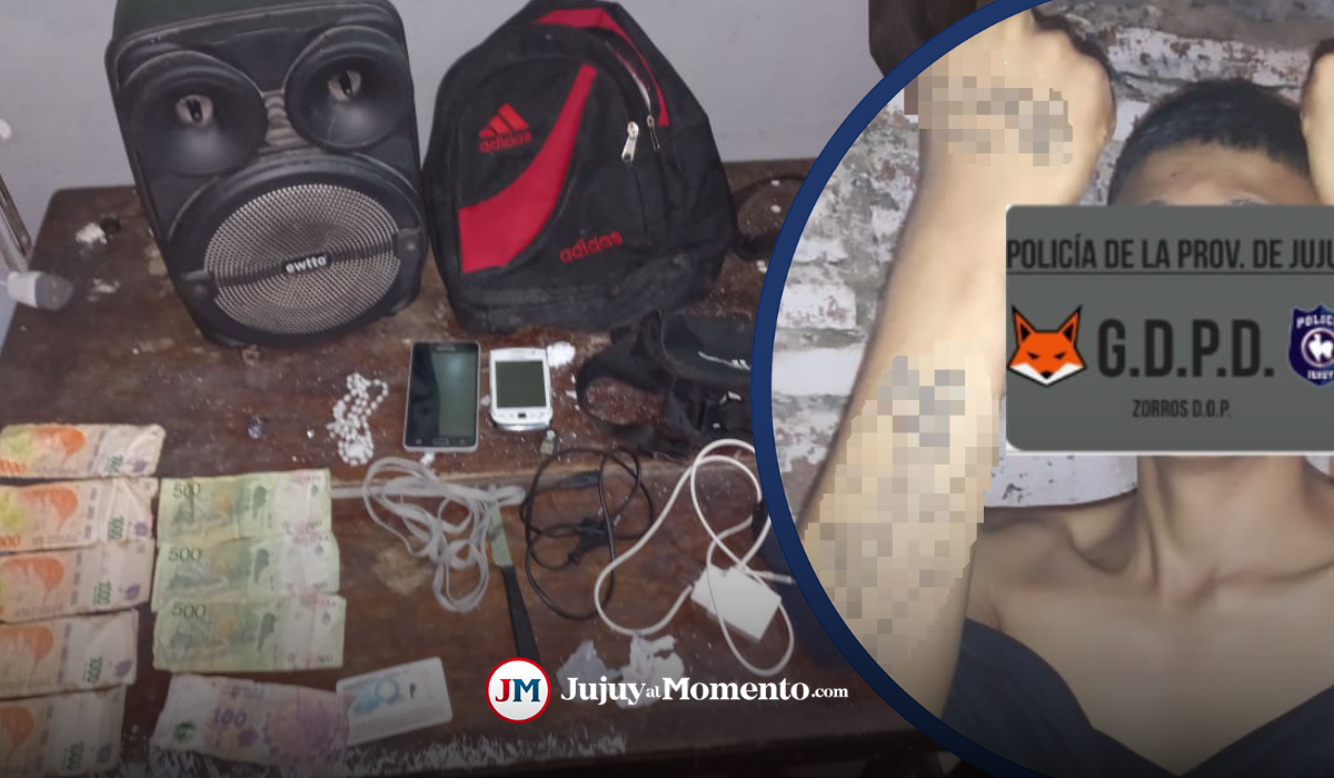 Al consultar por los objetos, no supo justificar su procedencia ni su propiedad, tratándose de un parlante mediano y dos teléfonos celulares, además, tenía en su poder envoltorios con sustancias ilícitas y un cuchillo mediano, objeto que utilizara para cometer actos delictuales.