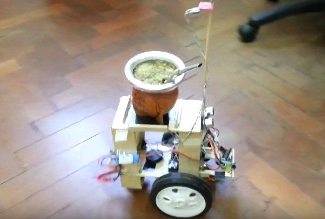 El joven programador Ignacio Delarmina, utilizó una plataforma de software libre para crear un robot que reparte mate; contiene una brújula y un sensor digital por ultrasonido y emite una alarma si la persona demora mucho en tomar el mate.