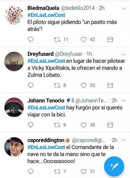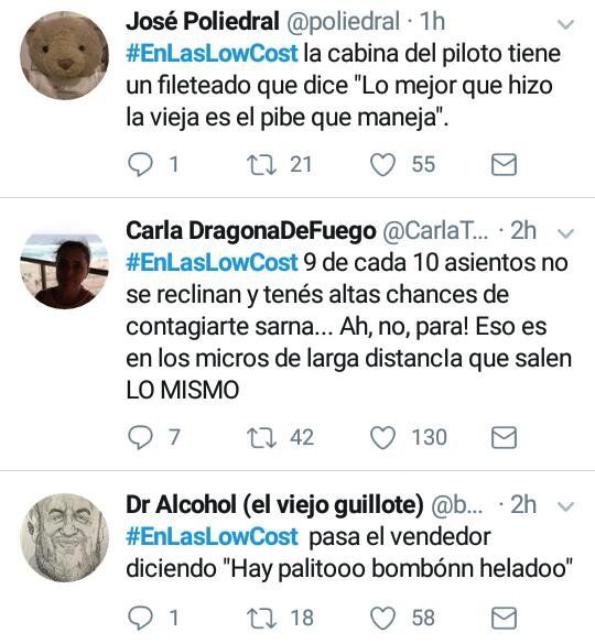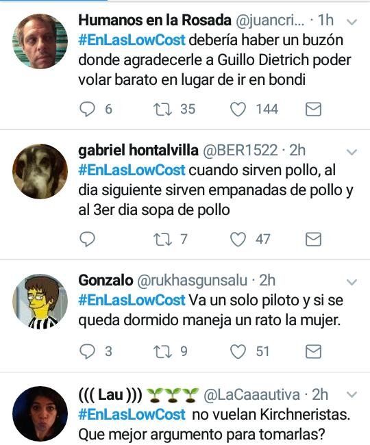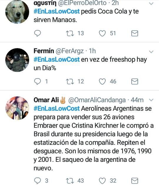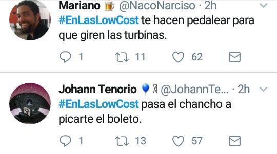 A través del hashtag #EnLasLowCost, el cual se ubicó durante casi toda la jornada en el primer lugar de los temas más publicados (Trending topic), realizaron chistes, comentarios irónicos y frases desopilantes para ridiculizar el servicio.
