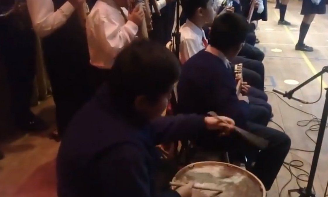 El vídeo recorre las redes. Lo subió Alejandro, profesor del Colegio Nuestra Señora del Huerto y cantante de Jasy Memby, grupo jujeño con larga trayectoria y conocido a nivel nacional.