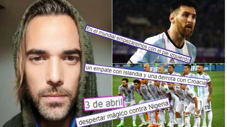 “Este mensaje lo dejo acá para cuando llegue el momento”, escribió en un posteo los primeros días de abril Sebastián y que ayer volvió a compartir con la frase “un recuerdo de mis predicciones”. “En el mundial empezaremos con el pie izquierdo, muchos problemas que llevarán a estar a punto de quedar eliminados en primera ronda. Calculo un empate con Islandia y una derrota con Croacia para empezar”, lanzó el muchacho, oriundo de la ciudad de Godoy Cruz, casi tres meses antes del comienzo de la Copa del mundo.