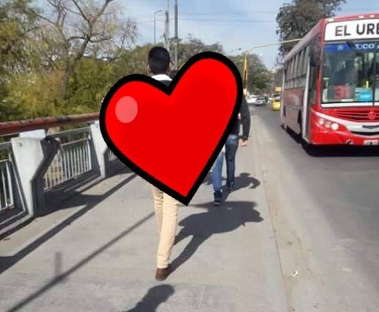 La imagen muestra a un joven llevando un peluche gigante por pleno centro de la capital jujeña. Si bien se puede interpretar de muchas formas, la mayoría de los usuarios de Facebook coinciden en que es un hombre enamorado.