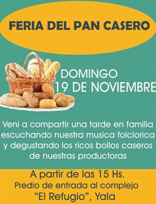 Será el domingo a partir de las 15 en el predio El Refugio de Yala. Como en cada edición participarán los productores de pan de la zona.
